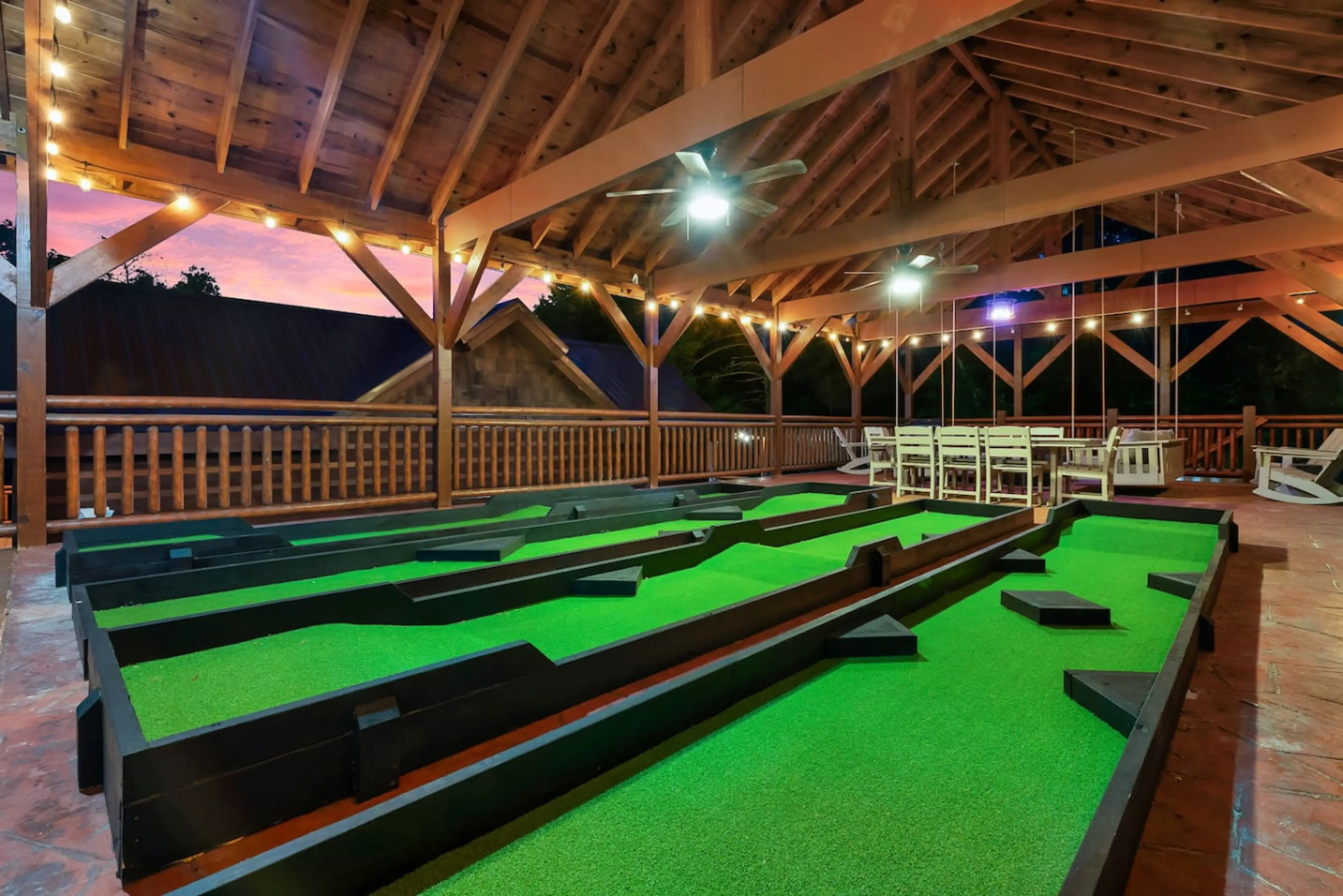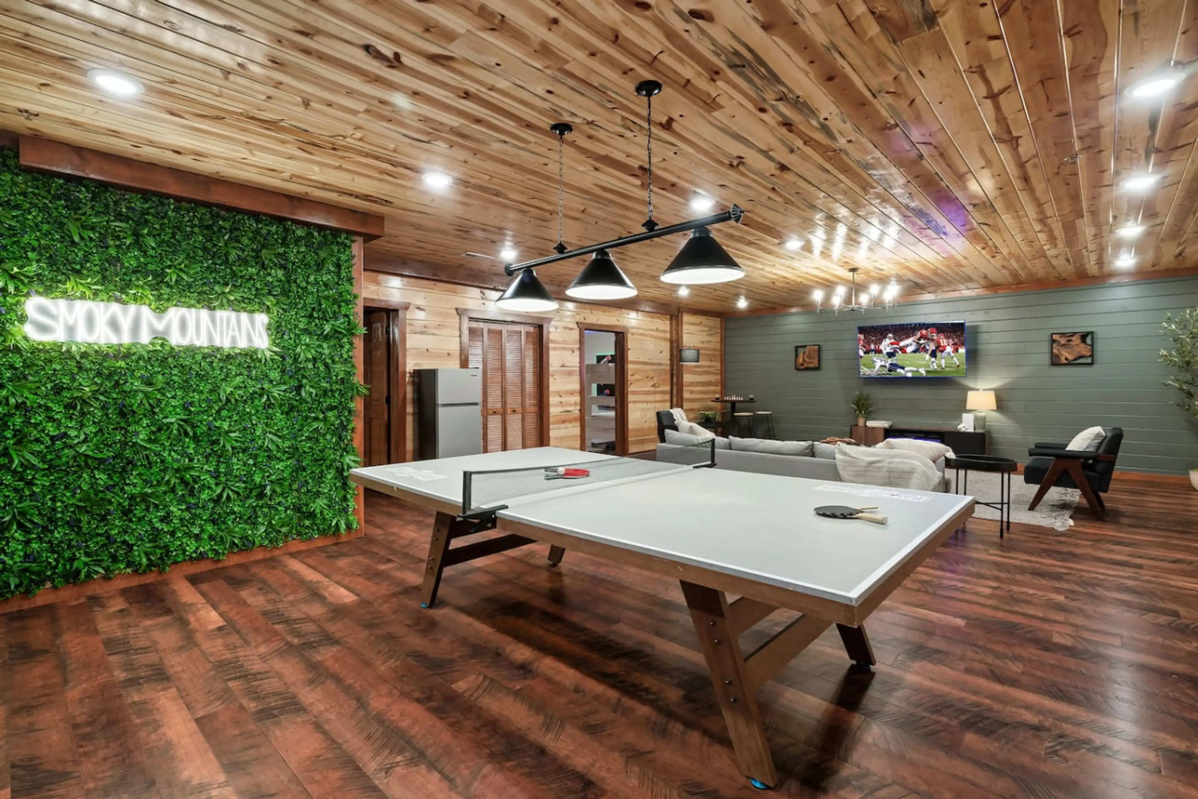Set in the heart of the Smoky Mountains, this luxury cabin is conveniently located near Parkway, Pigeon Forge, and Dollywood. Enjoy a Private Indoor POOL with movie screen, mini-golf, spacious decks, and multiple living areas designed for large groups. Sleep up to 20 guests with 6 King beds + mult...